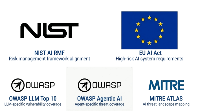 Instantly map discovered vulnerabilities to 5+ global regulatory frameworks, including the EU AI Act, NIST AI RMF, OWASP LLM Top 10, and OWASP